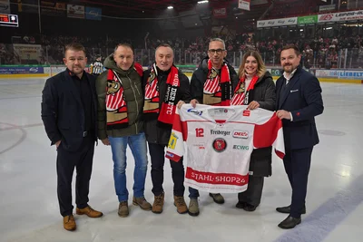 Beim Heimspiel der Eispiraten gegen die Kassel Huskies am vergangenen Freitag übergab Jörg Buschmann, Geschäftsführer der Eispiraten Crimmitschau, ein Trikot an Matthias Hensel, Leitung Operations bei der Volkswagen Group Services – als Zeichen einer starken Partnerschaft.